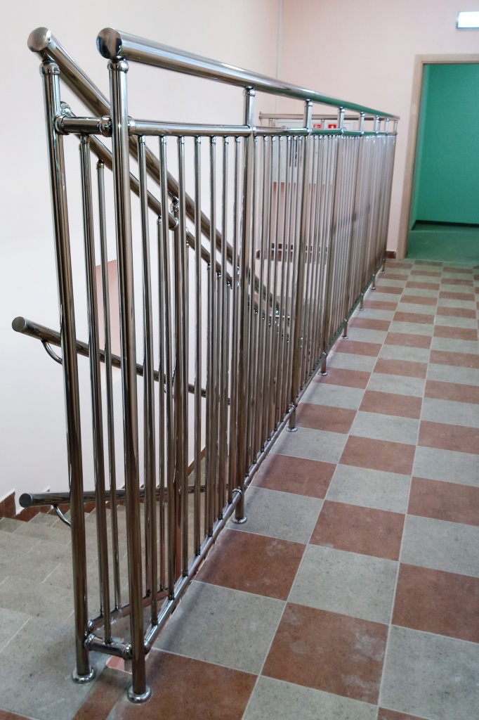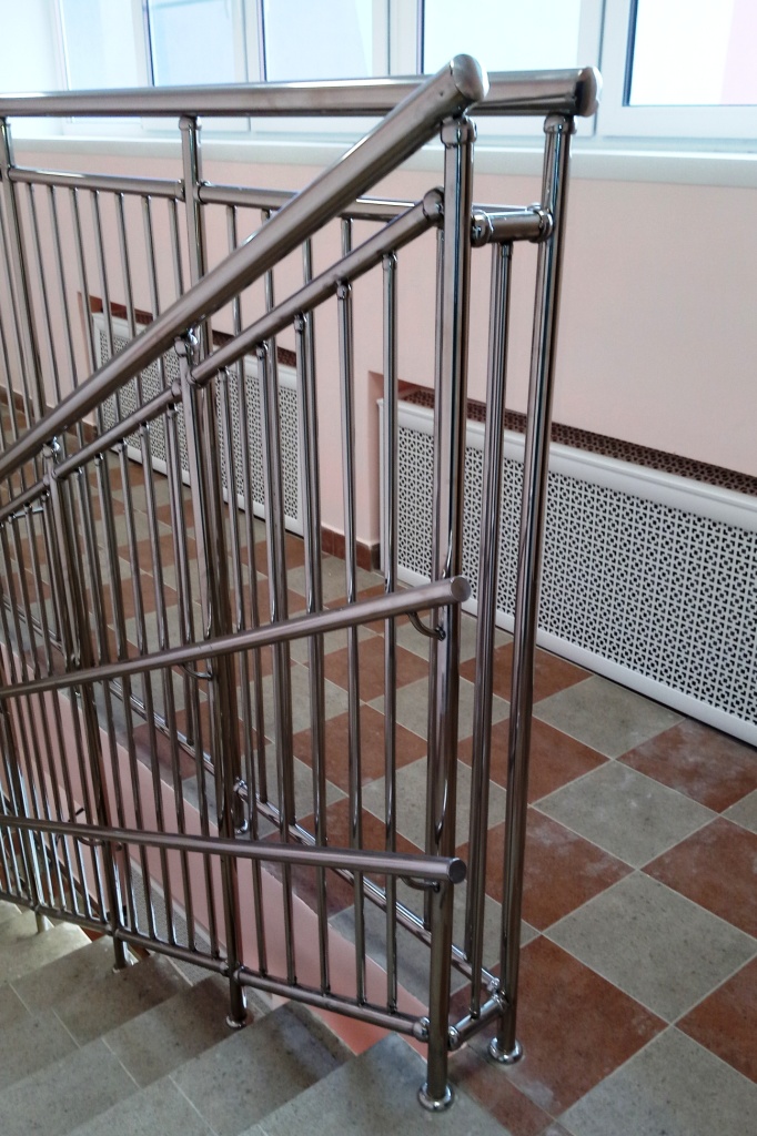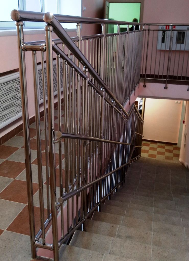 Высота ограждений лестниц, используемых детьми, не менее 1200 мм, а в дошкольных учреждениях для детей с нарушением умственного развития - 1800 или 1500 мм. Нижние поручни толщиной не более 40 мм обеспечат детям удобный подъем и спуск по лестнице, а верхний 50 мм взрослым