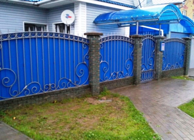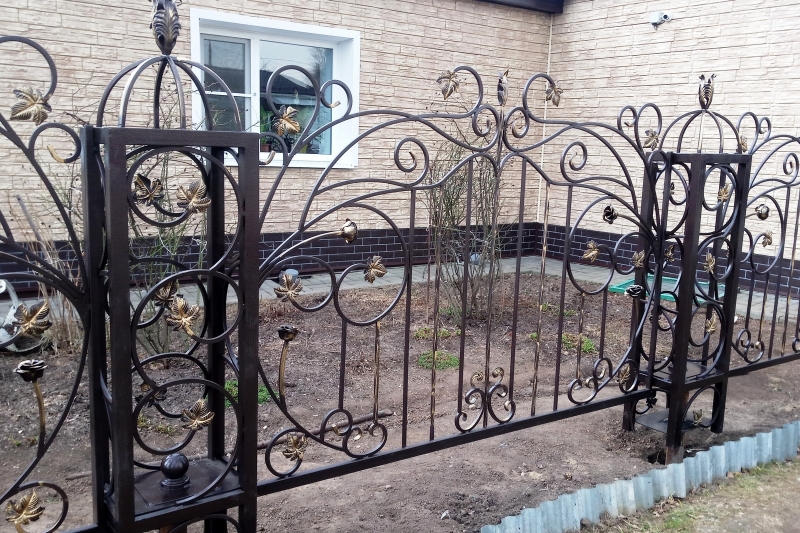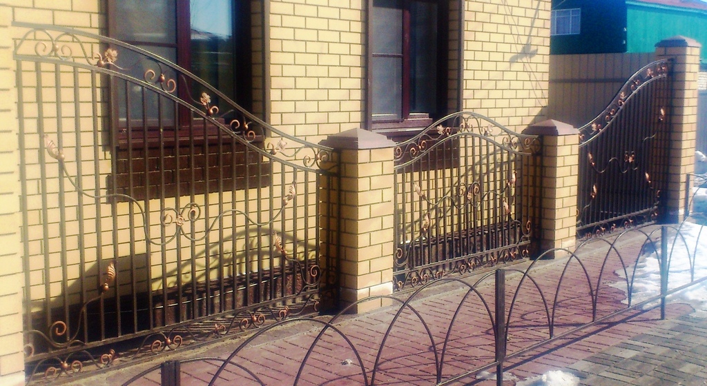 Двери, решётки на окна и проёмы, балконы и балконные ограждения, козырьки, лестницы и лестничные ограждения, ворота, калитки, заборы и вставки на заборы, парковая и садовая мебель, беседки, мангалы, фонари, дымники, флюгеры и многое другое можно создать и украсить при помощи ковки.