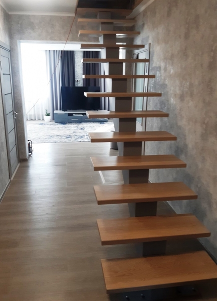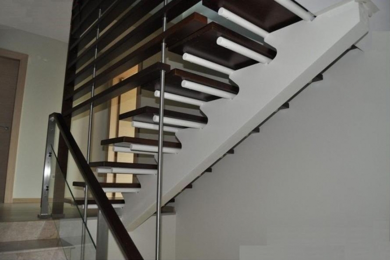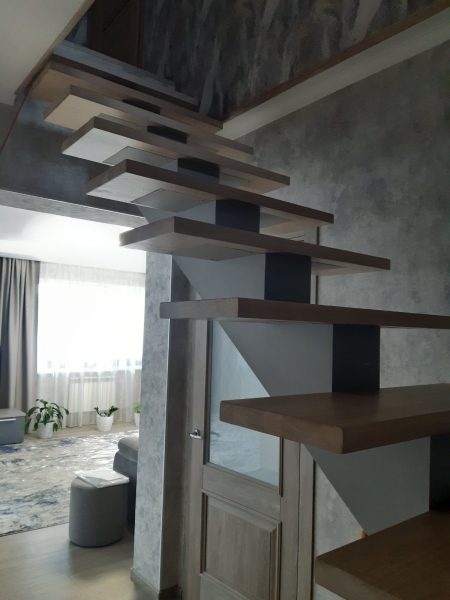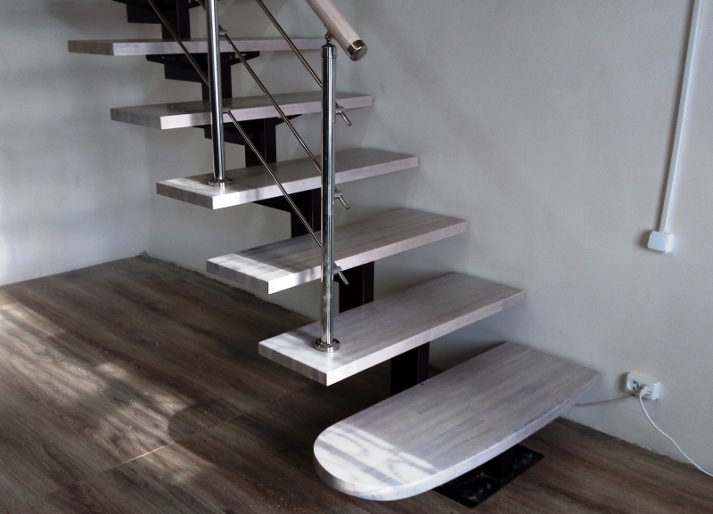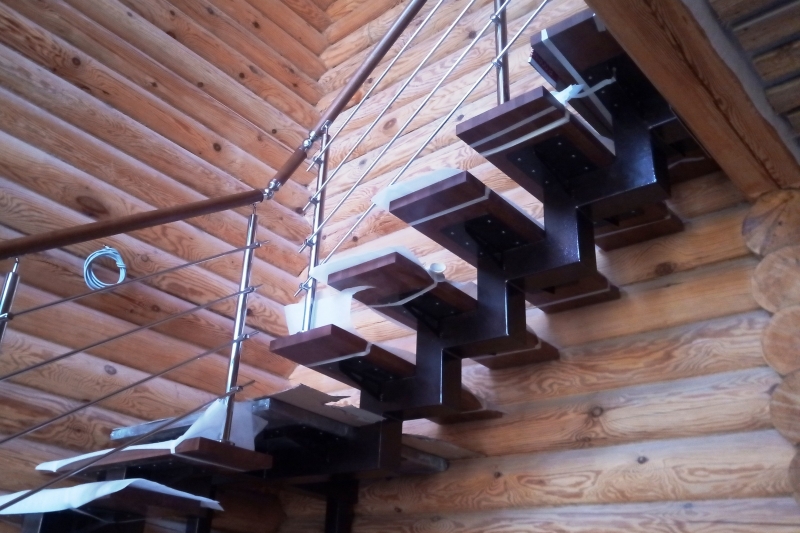 Изготовление лестниц для дома на заказ часто предполагает создание необычных конструкций. Если вам хочется чего-то очень стильного и современного, конструкция на больцах – отличный вариант. Больцы – это металлические крепления, которыми ступени лестницы присоединяются прямо к стене или несущей конструкции. Изделие с ними выглядит, будто висящим в воздухе, зрительно не загромождает пространство.
