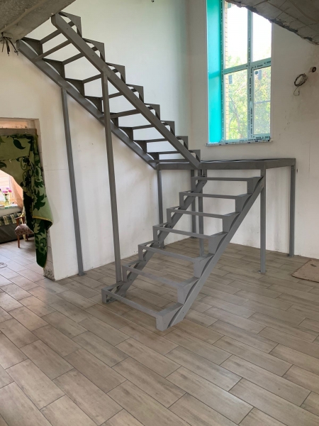 Металлический каркас открытого типа обычно красится краской с качеством автомобильной покраски или кованых ограждений. При покраске автомобильными красками лестница выглядит стильно и современно и обычно используется со стеклянным ограждением или с ограждением на металлических балясинах.