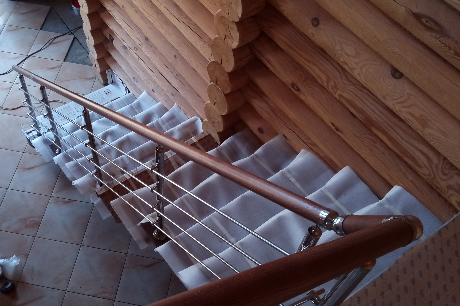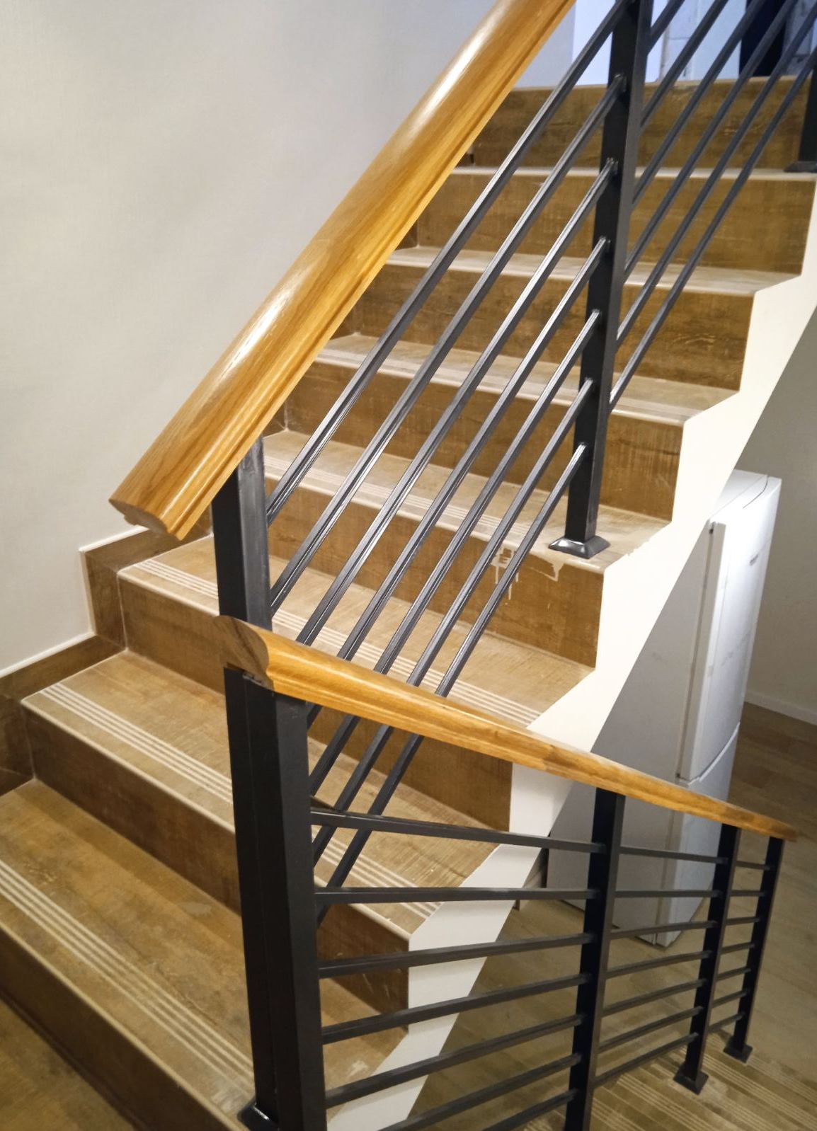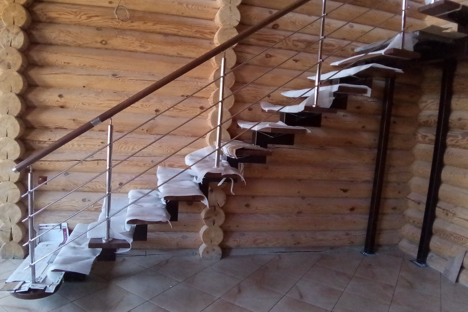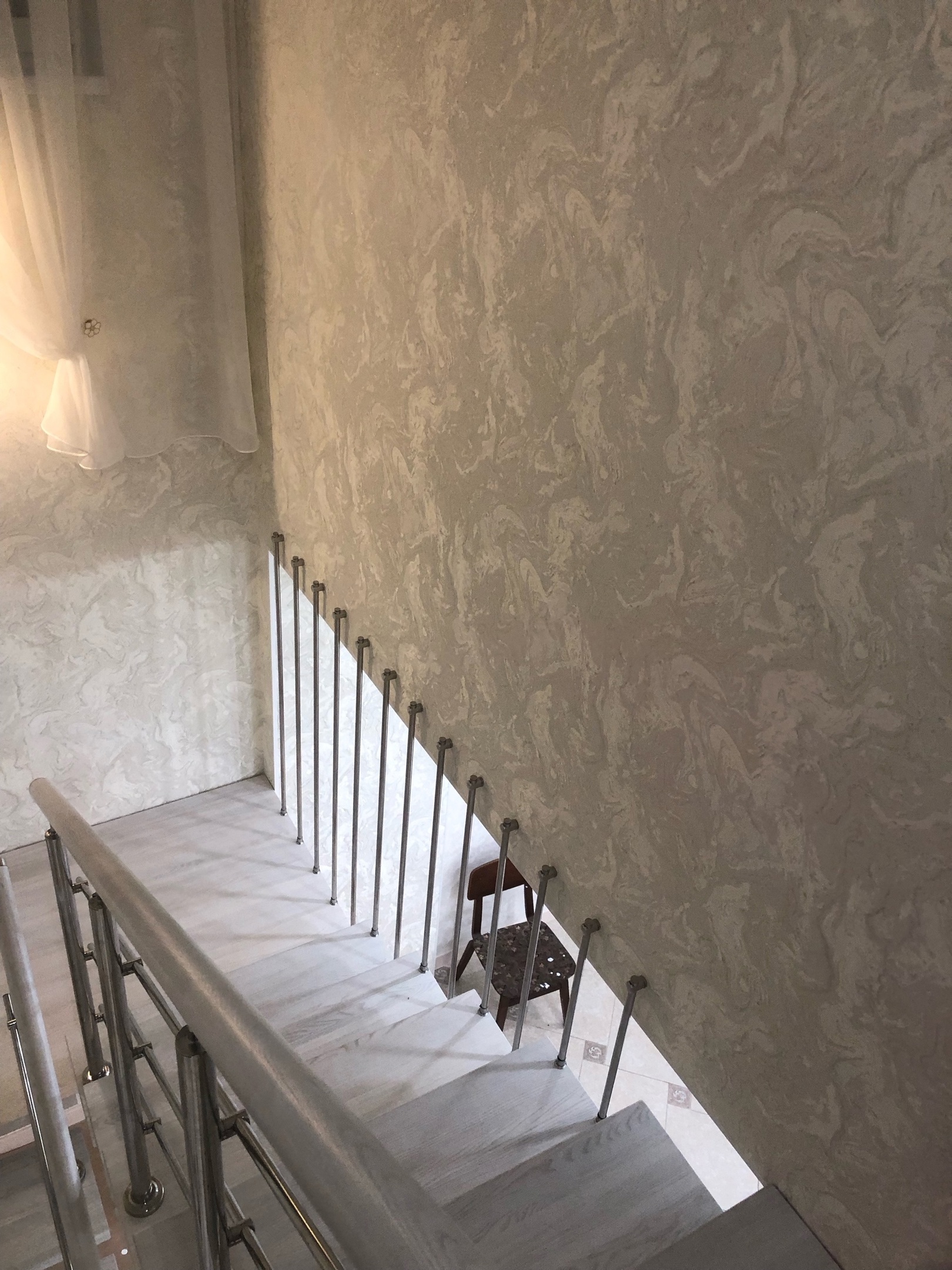 Отличная альтернатива полноценным нержавеющим перилам. Поручни из нержавеющей стали устанавливаются на стену параллельно лестничному маршу на расстоянии 5-7 см от стены.