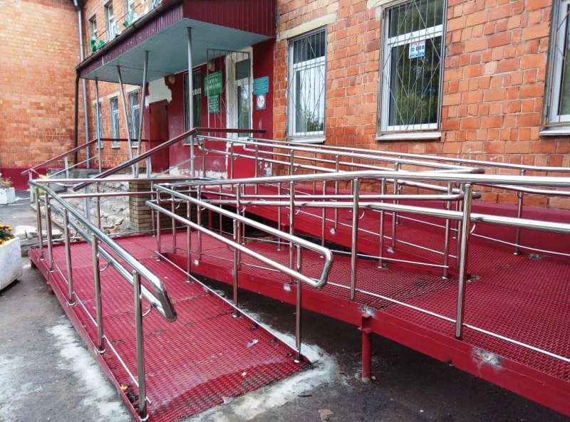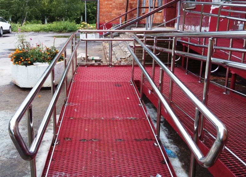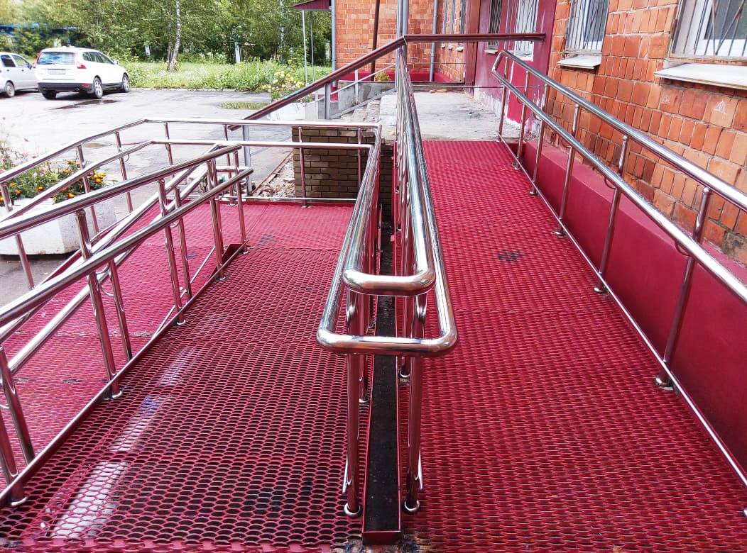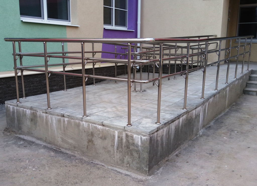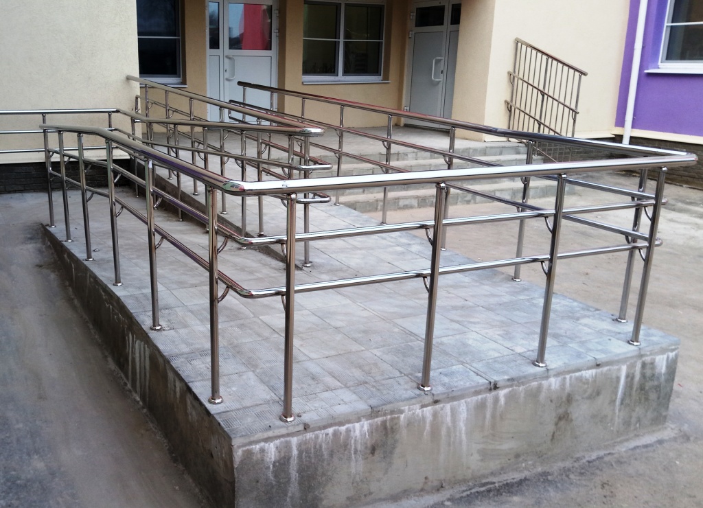 В соответствии требованиям Федерального закона от 29.12.2004 г. N 190-ФЗ «Градостроительный кодекс Российской Федерации", Федерального закона от 24.11.1995 г. N 181-ФЗ "О социальной защите инвалидов в РФ", Федерального закона от 27.12.2002 г. N 184-ФЗ "О техническом регулировании", Федерального закона от 30.03.1999 г. N 52-ФЗ "О санитарно-эпидемиологическом благополучии населения", вход в любое здание необходимо обустроить поручнями и пандусом для маломобильных групп населения.