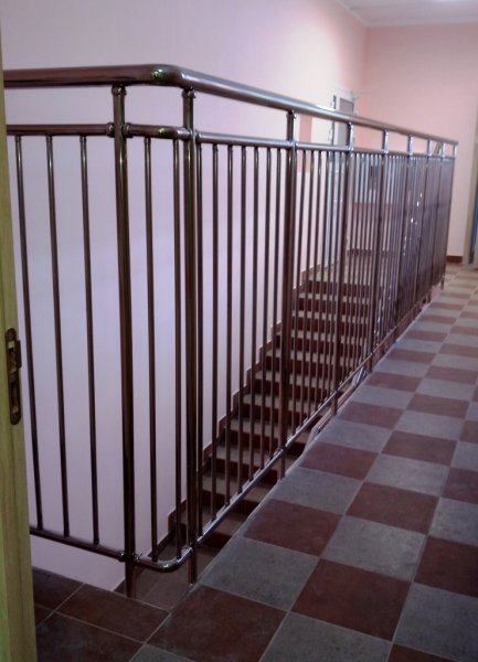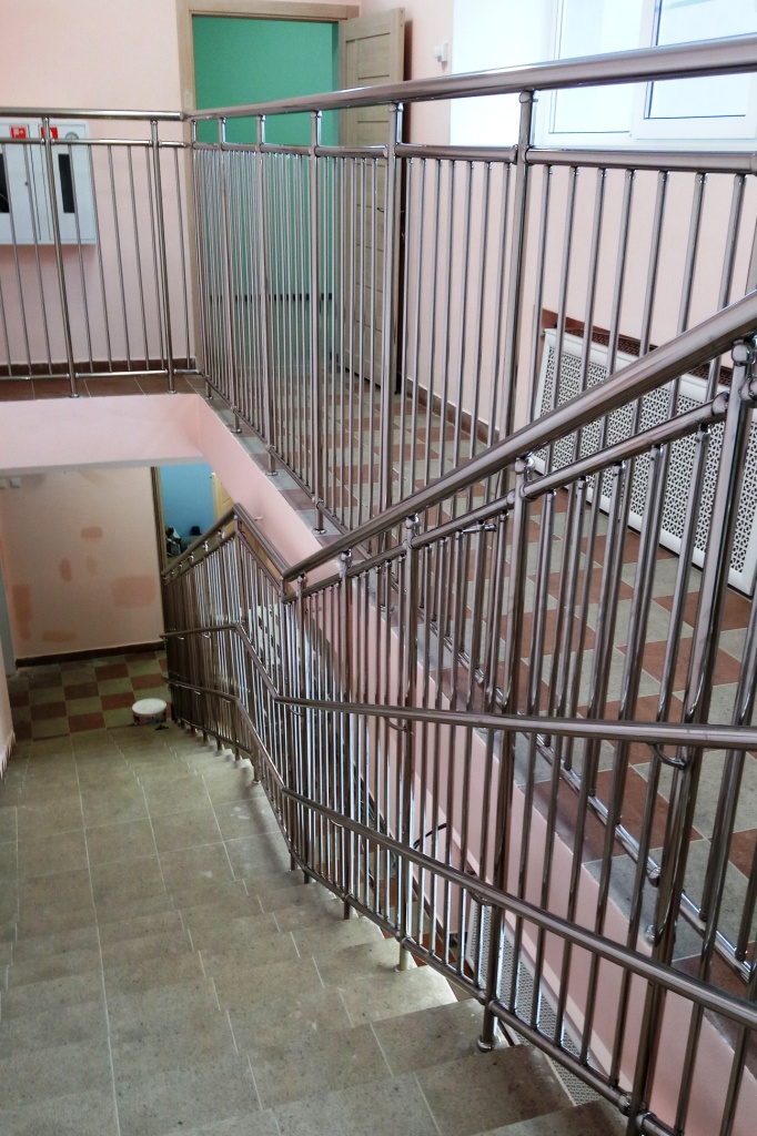 Высота ограждений лестниц, используемых детьми, не менее 1200 мм, а в дошкольных учреждениях для детей с нарушением умственного развития - 1800 или 1500 мм. Нижние поручни толщиной не более 40 мм обеспечат детям удобный подъем и спуск по лестнице, а верхний 50 мм взрослым
