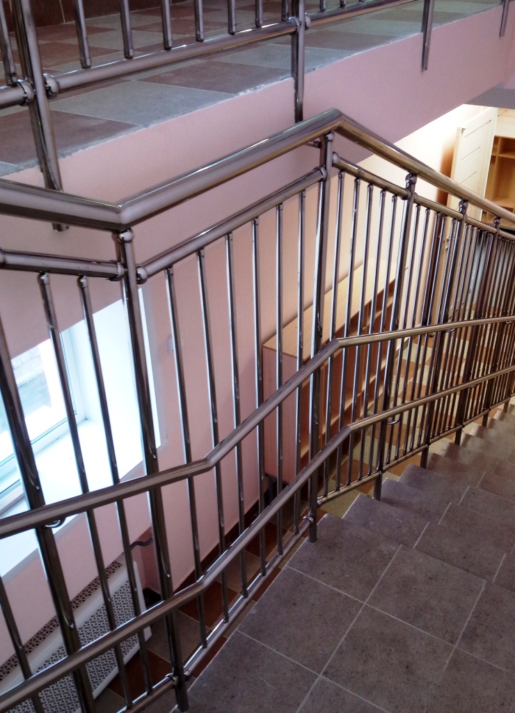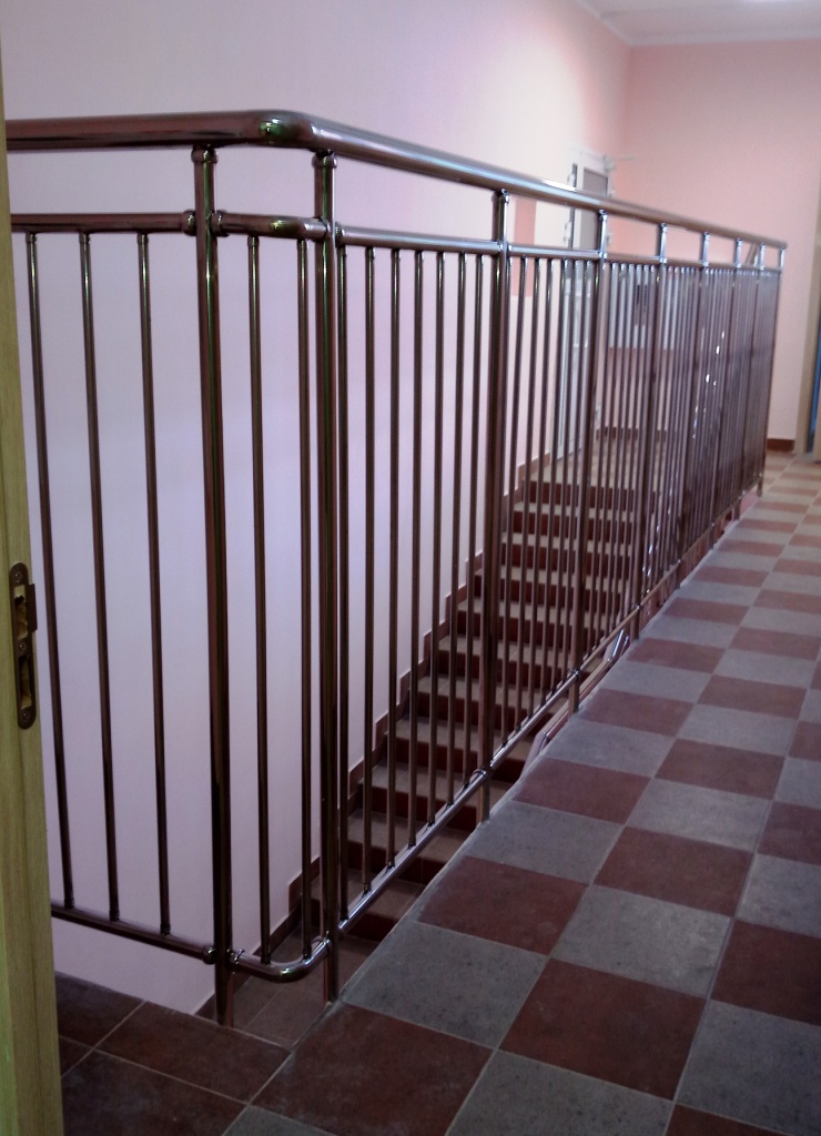 Вертикальное заполнение с расстоянием между элементами не более 100 мм без горизонтального членения это делает безопасным эксплуатацию лестницы